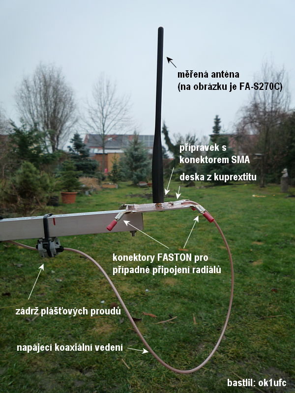 s poškrábaným povrchem. Anténa je vidět v přípravku. Naměřené VSWR je