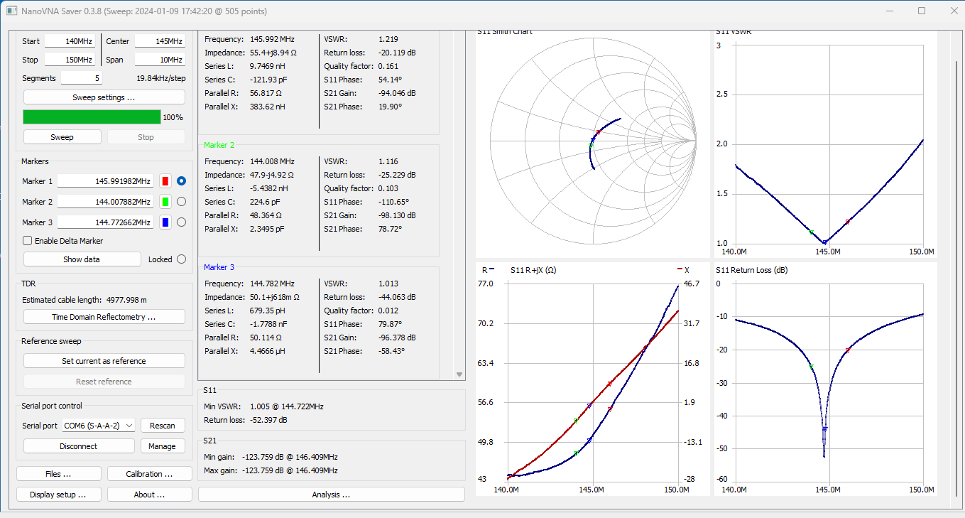 nejmenší odrazy na mezi 145.5 MHz až 146 MHz, ale neplatilo to pro