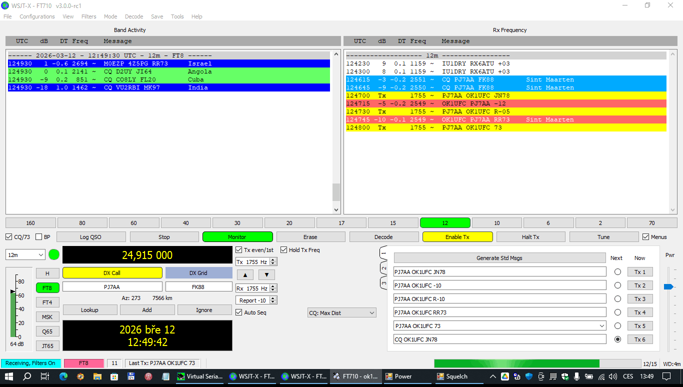 programem WSJT-X. Kmitočet, mód USB, PTT, to vše řídí WSJT-X. Ale z