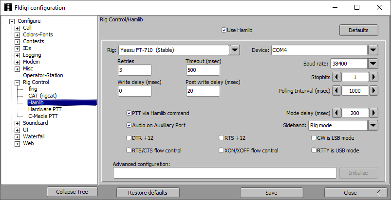 Vidíte, že v konfiguraci Fldigi jsem