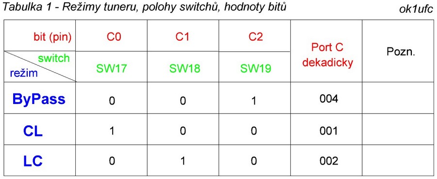 konfigurace CL, LC, ByPass - viz tabulka 1, bajt nabývá hodnot 001,