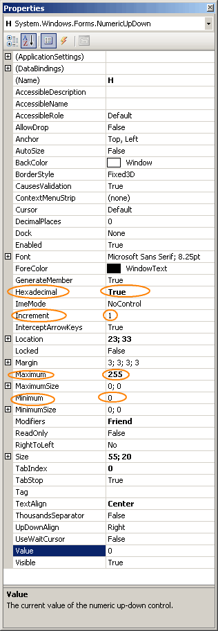 nejdůležitější vlastnosti u komponenty NumericUpDown (na obrázku