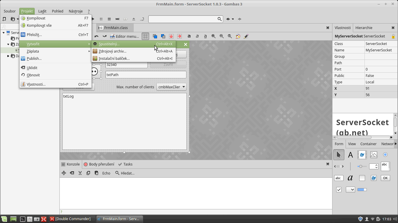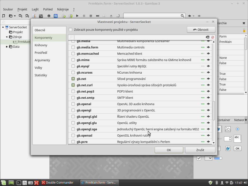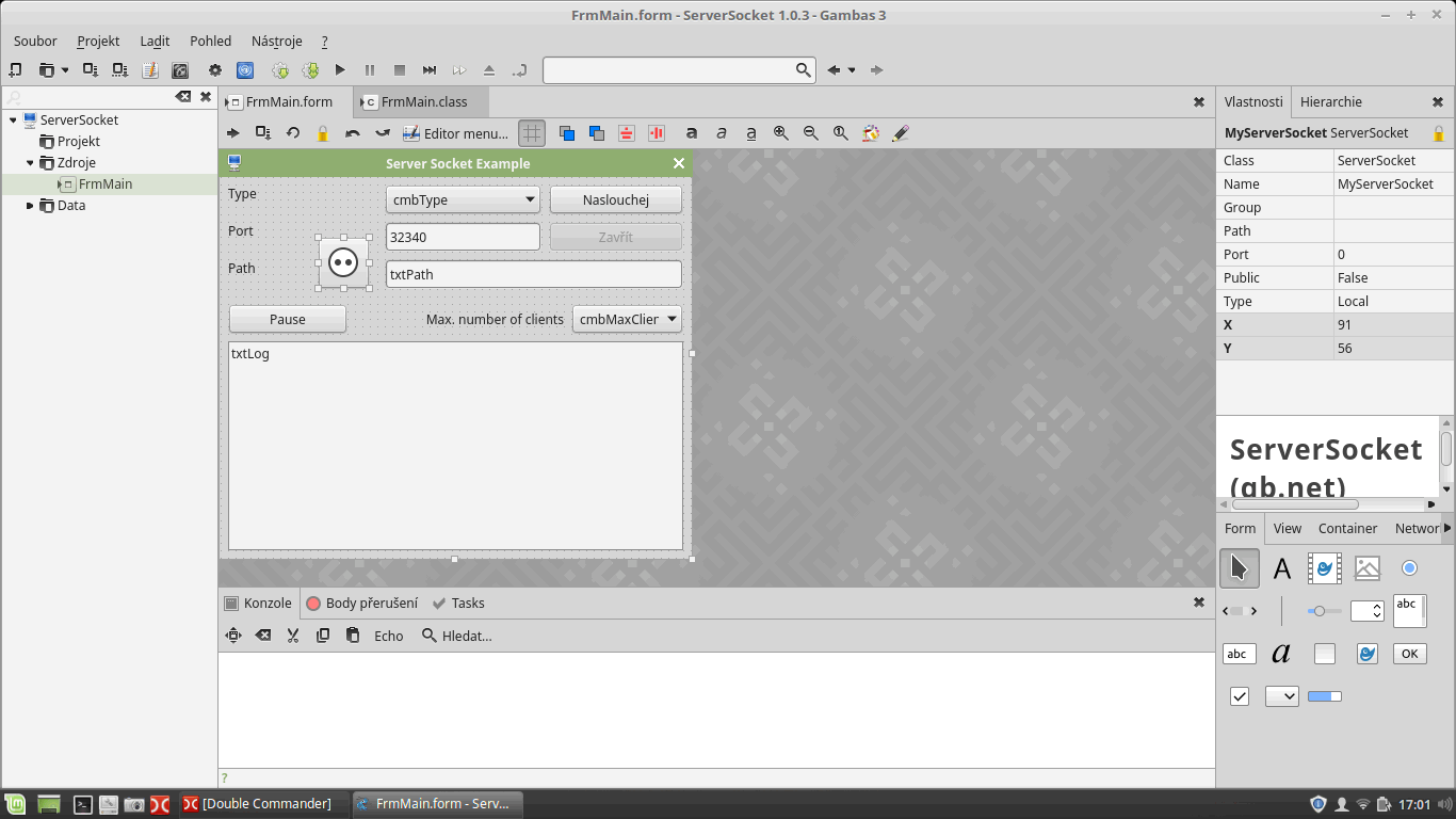 Client Socket, který jsme si už dříve stáhli, pustili si ho v Gambasu