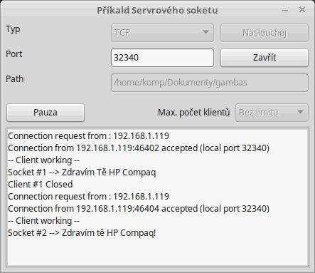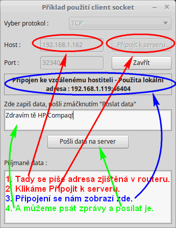 - že Client pracuje a také, že jsme obdrželi zprávu "Zdravím Tě HP
