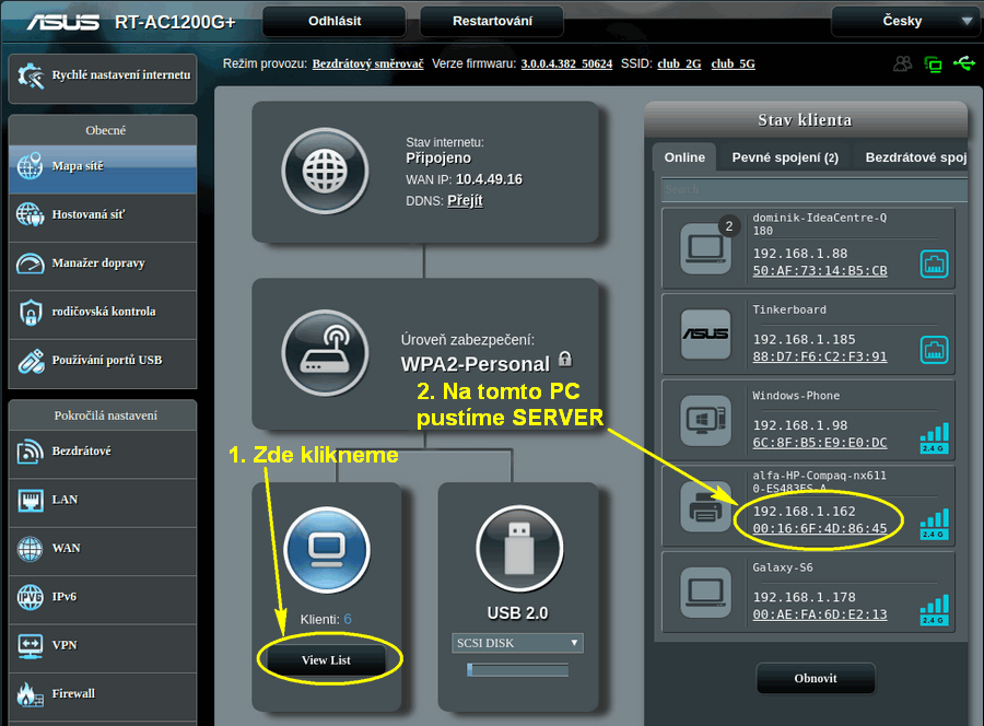 a heslo (password). Po přihlášení do mého routeru Asus vidím obrazovku