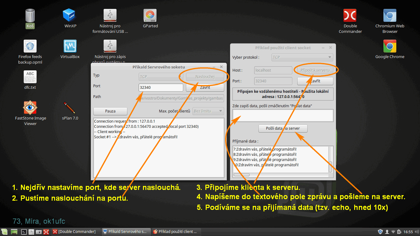 4. A můžeme psát a posílat zprávy na server, který naslouchá. |