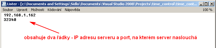 portu, kde server naslouchá, do druhé se píše IP adresa, kde máme