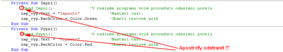 odstraníme tyto apostrofy a dovolíme programu komunikovat. Pokud máme