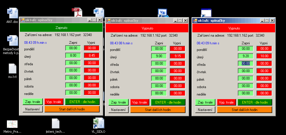 můžeme těmito spínačkami v daný čas z desktopu zapínat nebo vypínat