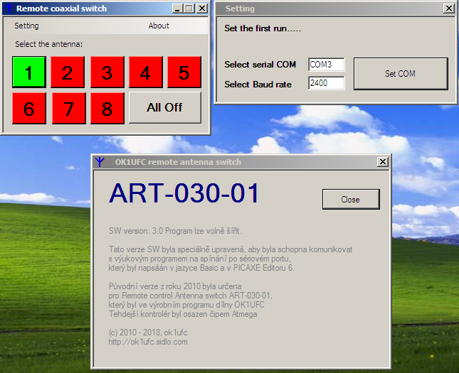Popis sériové komunikace z PC do čipu PICAXE - tentokrát spínač antén