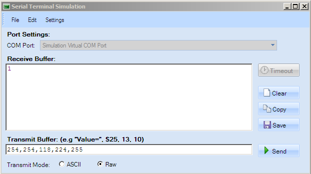 jedné z úvodních lekcí. 5. PICAXE Editor 6 má vestavěný simulátor. Je to dobré, když ještě nemáte žádnou desku s čipem a začali jste zkoušet prográmek. Já to používám hlavně s notebookem ve vlaku. Rovněž tento komunikační program lze vyzkoušet: