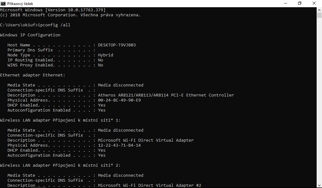 rád příkazový řádek, byl jsem rád, že ve Windows 10 byl. Zadal jsem do