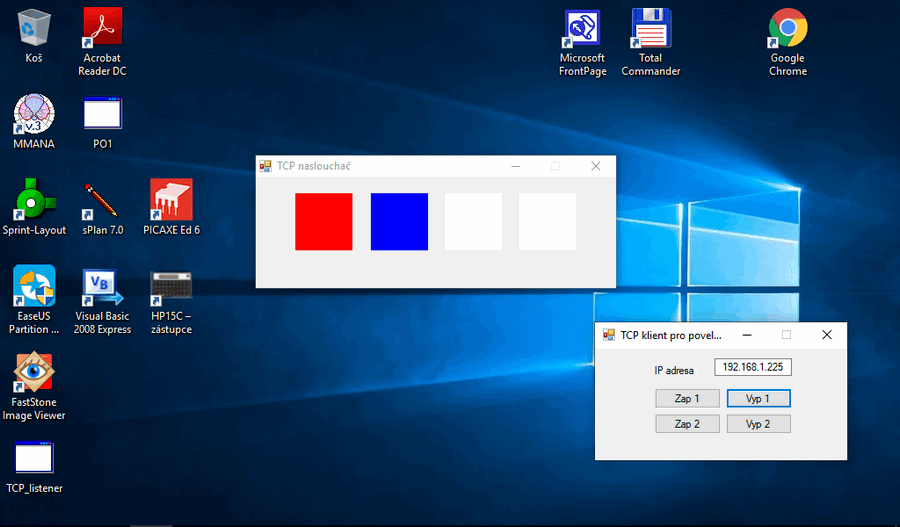 znaků) a pokud je přijat známý povel (Zap1, Zap2, ..., Vyp1, ...,