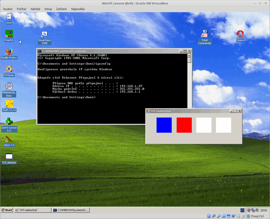 2. Pod Virtual Boxem program fungoval normálně, server naslouchal a