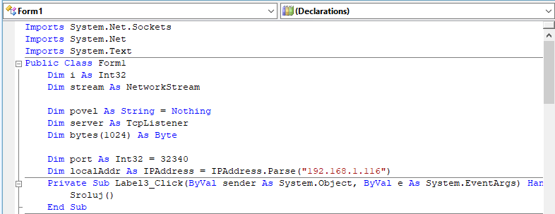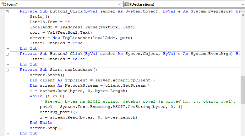 Na další proceduru, tj. Start_naslouchace ( ) se zaměříme. Tam je na