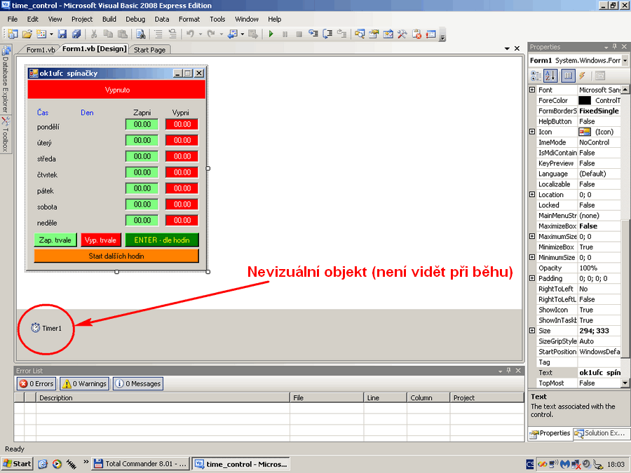 nevizuálního objektu Timer1, volá 2 systémové funkce (Format a Shell),