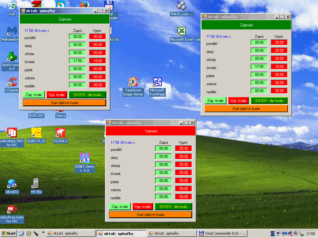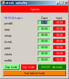 - umožňují týdenní plánování zapnutí a vypnutí zařízení (čas se píše