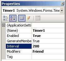 které budou po startu Form1 důležité - interval 200 milisekund; po