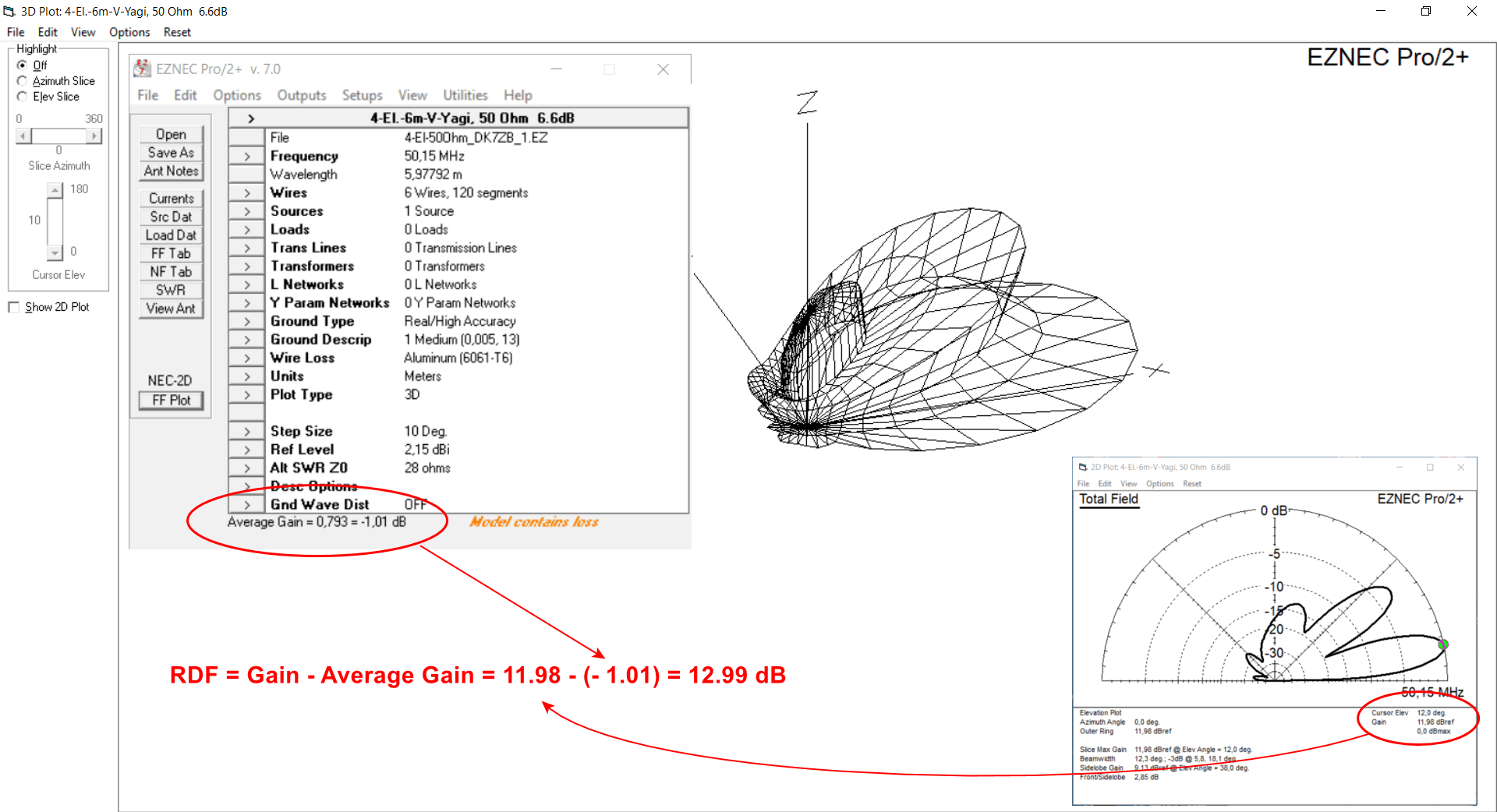 1. EZNEC počítá (pokud je nastaven Plot type = 3D) tzv. Average Gain (pustit EZNEC a ukázat).