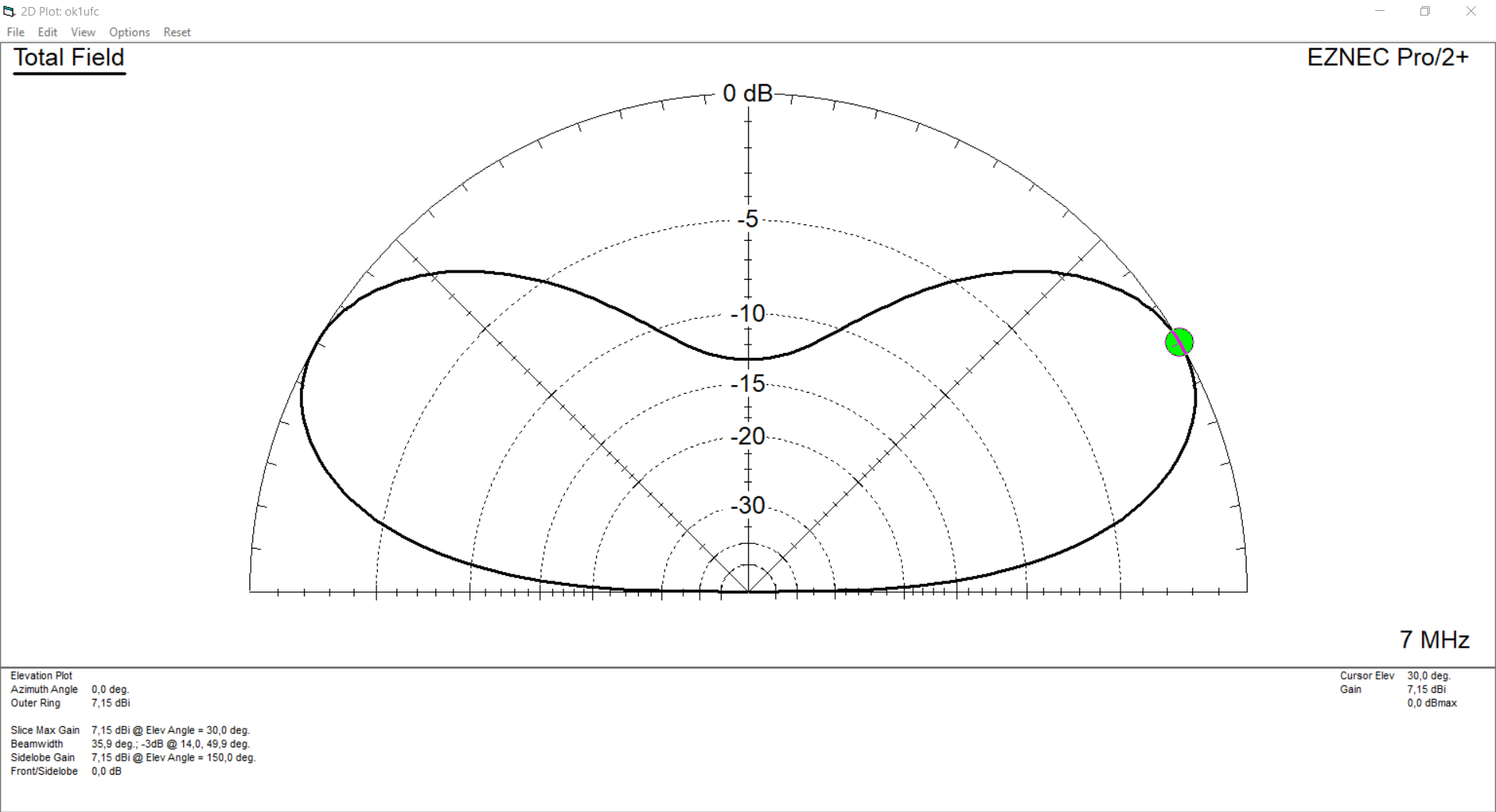 4. Ukázat vyzařované pole pro Delta loop v pásmu 80m a 40m.