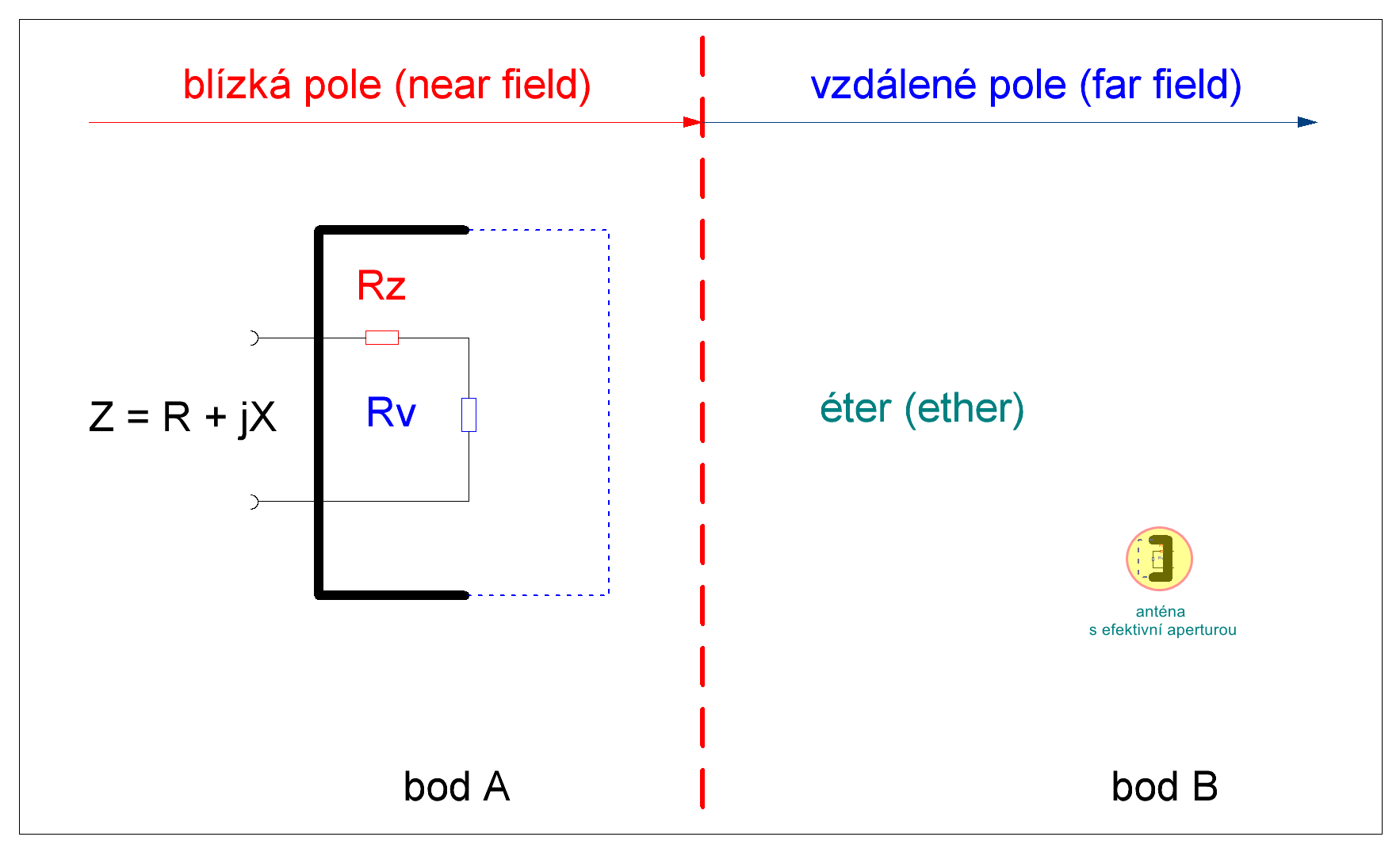 Pv = Rv x I2 ... Pv je vyzařovaný výkon, Rv je vyzařovací odpor;