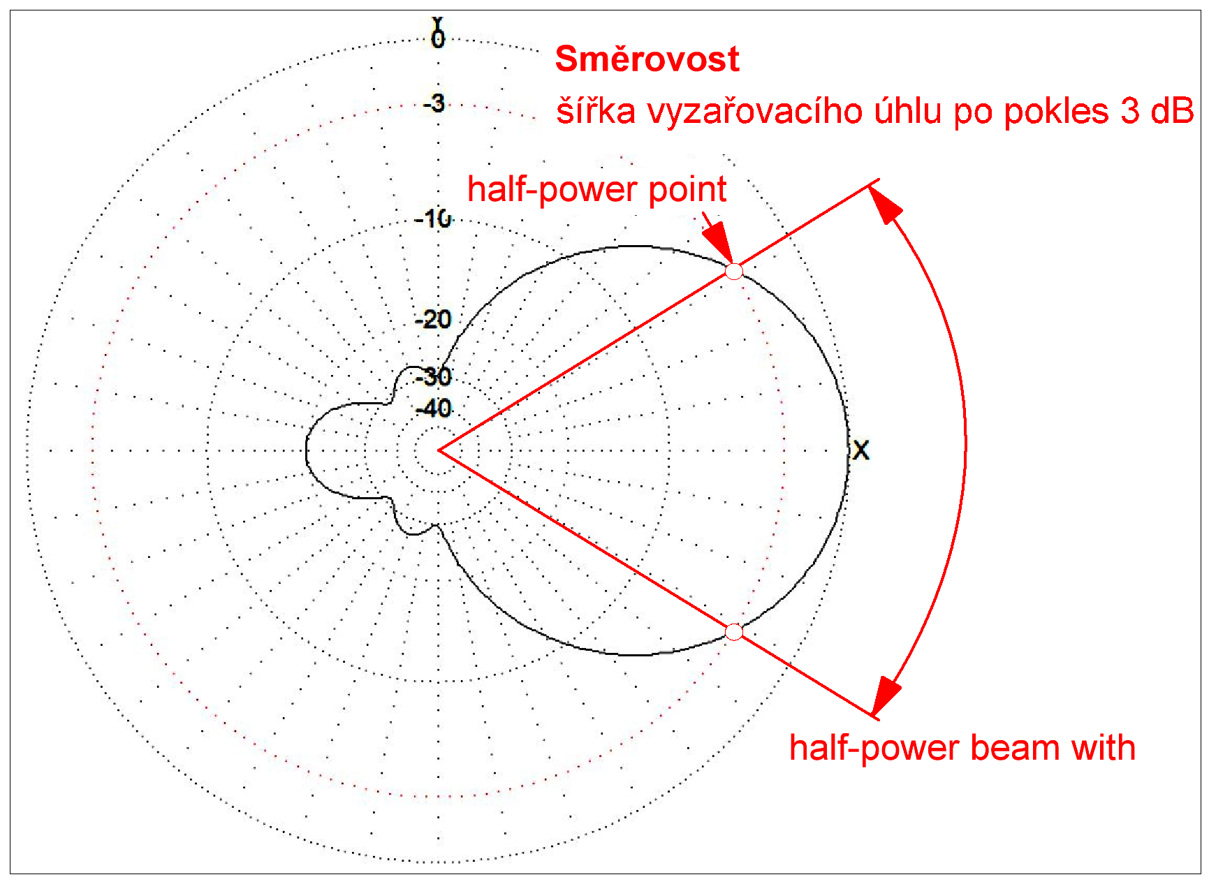 Směrovost je schopnost antén vyzařovat v požadovaném směru.Tuto vlastnost posuzujeme podle směrového vyzařovacího diagramu v horizontální a ve vertikální rovině, případně podle dalších definovaných parametrů. Prosím, vyčkejte, než bude definován parametr RDF.