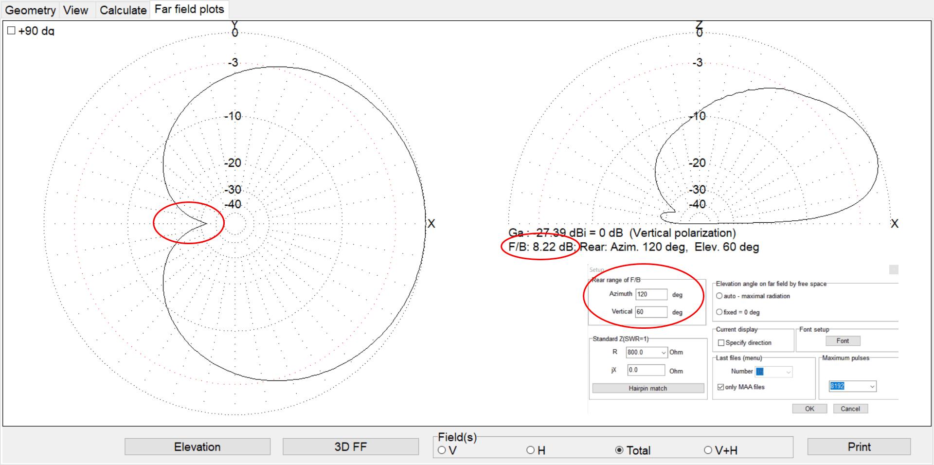 Pozn. 4: Některé programy NEC mají implementován algoritmus na optimalizaci F/B. Obvykle umožňují nastavit i prostor v obou rovinách, ve kterém se sleduje vyzařování.
