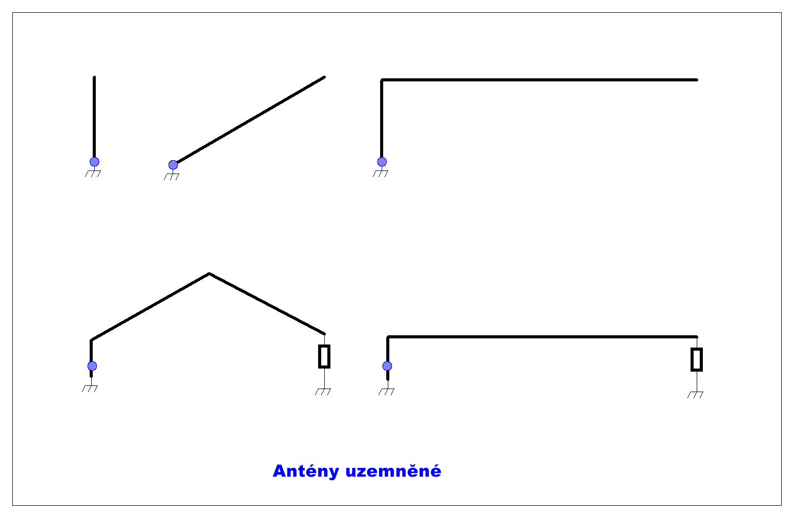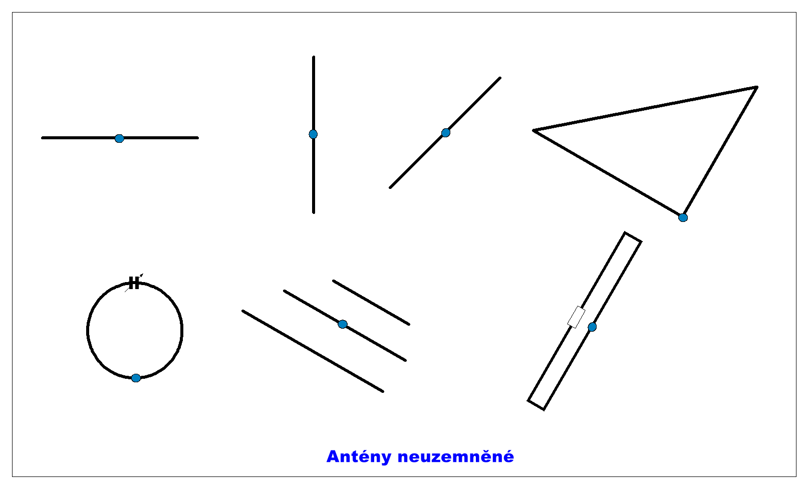 - drátová anténa, která vyžaduje podpěry (stožárky); vysvětlit, proč řešit vyzařování