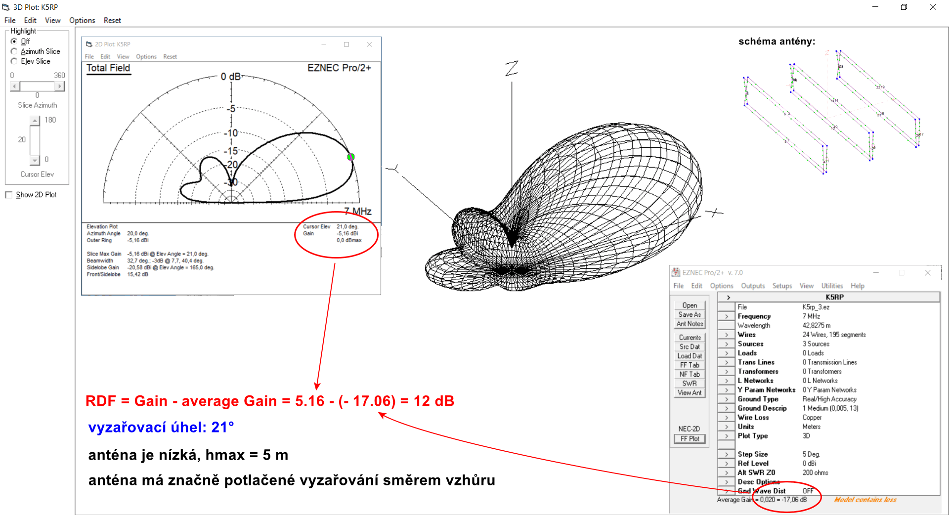 v ukázkách MMANA je model antény, ant. je zkrácená na zářiči i na