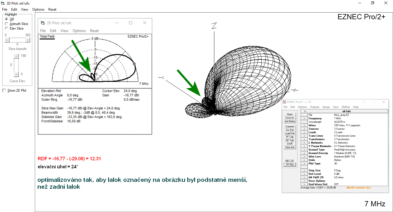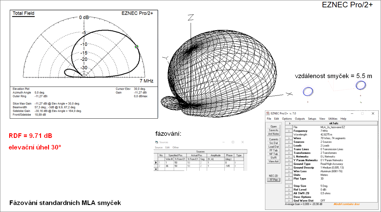 ukázat návrh soustavy 3 nízkých smyček pro pásmo 40 m s