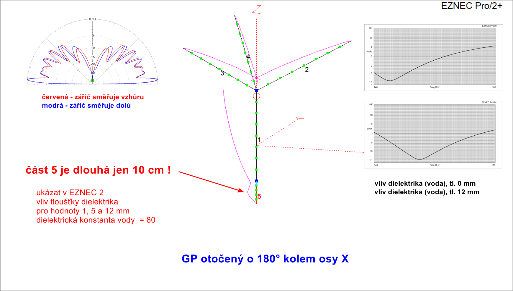 pro 50 MHz rozdílnost ve vyzařovacích diagramech; podrobnější popis -