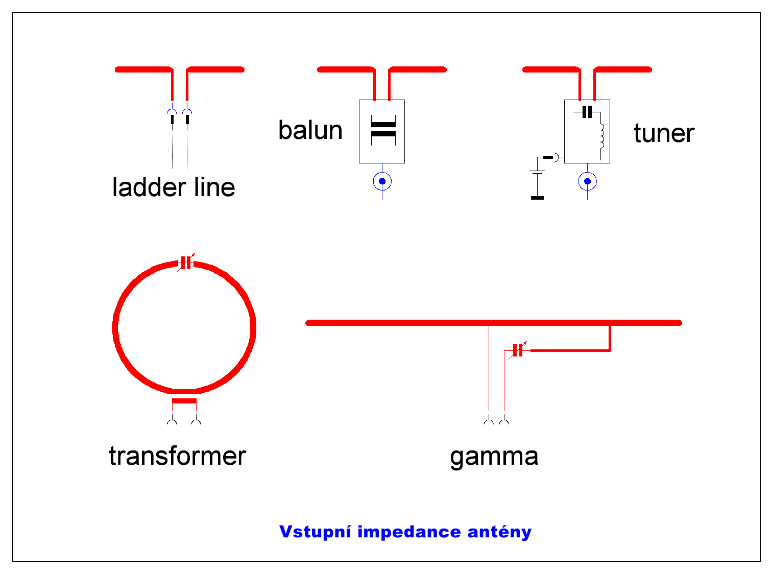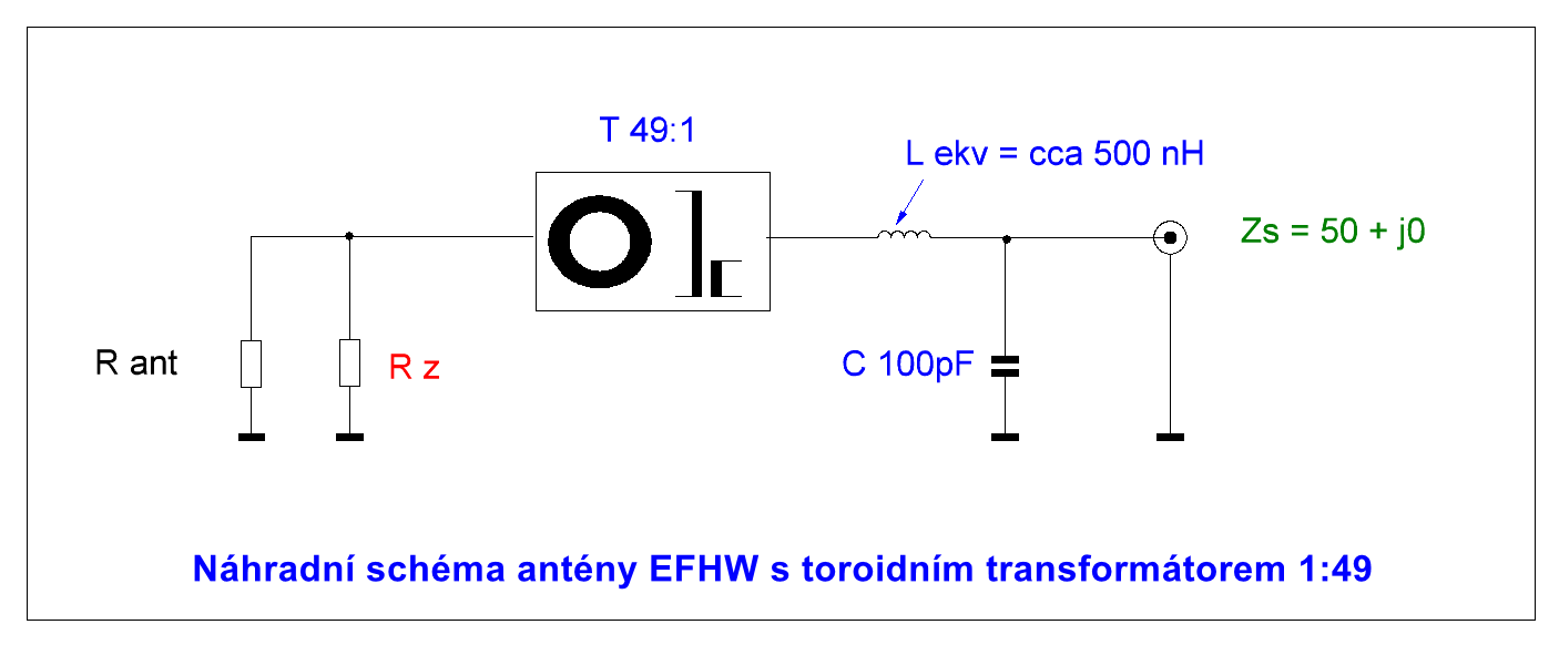 Náhradní schéma antény s přizpůsobením k napáječi: