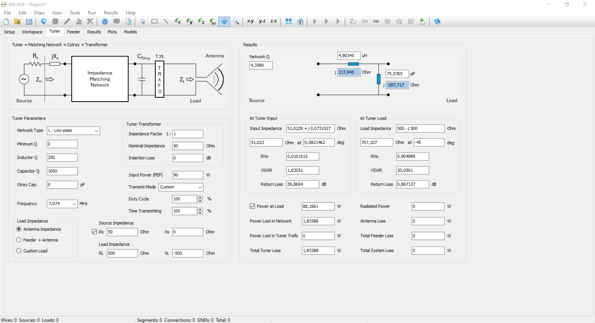 výpočet. Ukázat ve Smith chart. Ztráty tunerů můžeme měřit například