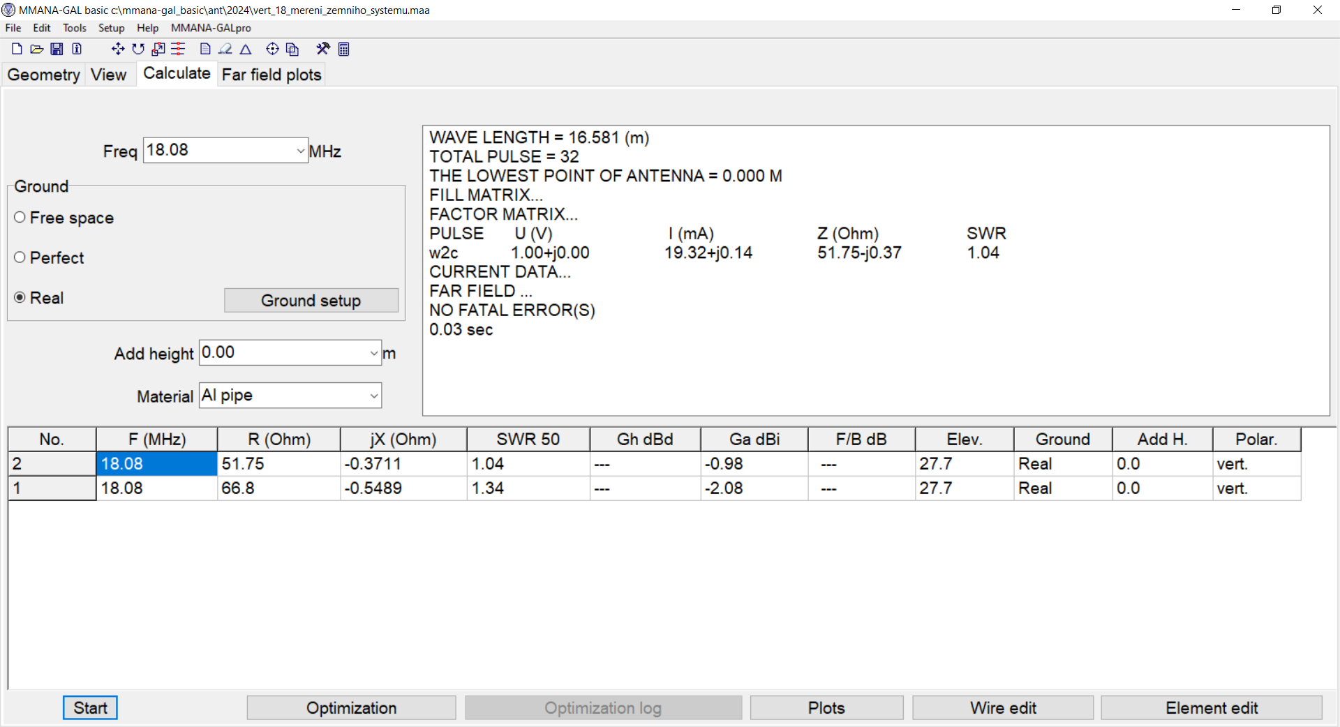 5. Pokud provádíme optimalizace směrové antény a chceme výsledek
