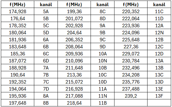 Kmitočty: DAB+ vysílá na kmitočtech přidělených původně pro