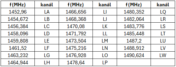 1452 až 1492 MHz. Nikoliv v České republice. Mám tedy přijímače pouze