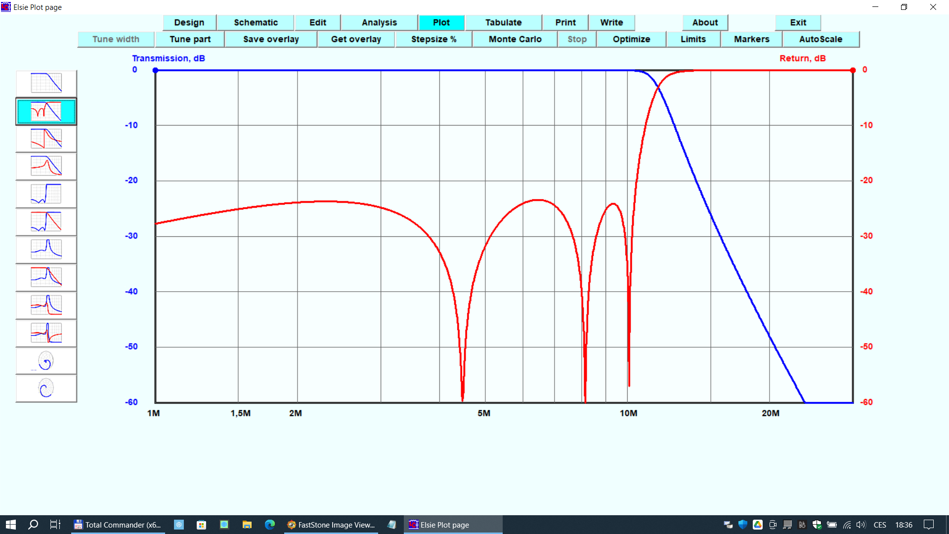 Z předchozích obrázků vidíme, že programem Elsie uděláme jednoduše analýzu dolní, horní nebo pásmové propusti a získáme požadované výstupy, které lze použít v radioamatérské praxi. Samozřejmě, že existuje celá řada dalších nástrojů pro návrh filtrů. Já v tomto článku uvádím nástroje jednoduché, nenáročné na výpočetní výkon PC, ale především boží z hlediska jejich obsluhy. Prostě víte, co máte dělat, i když s programem dva roky nic nepočítáte.