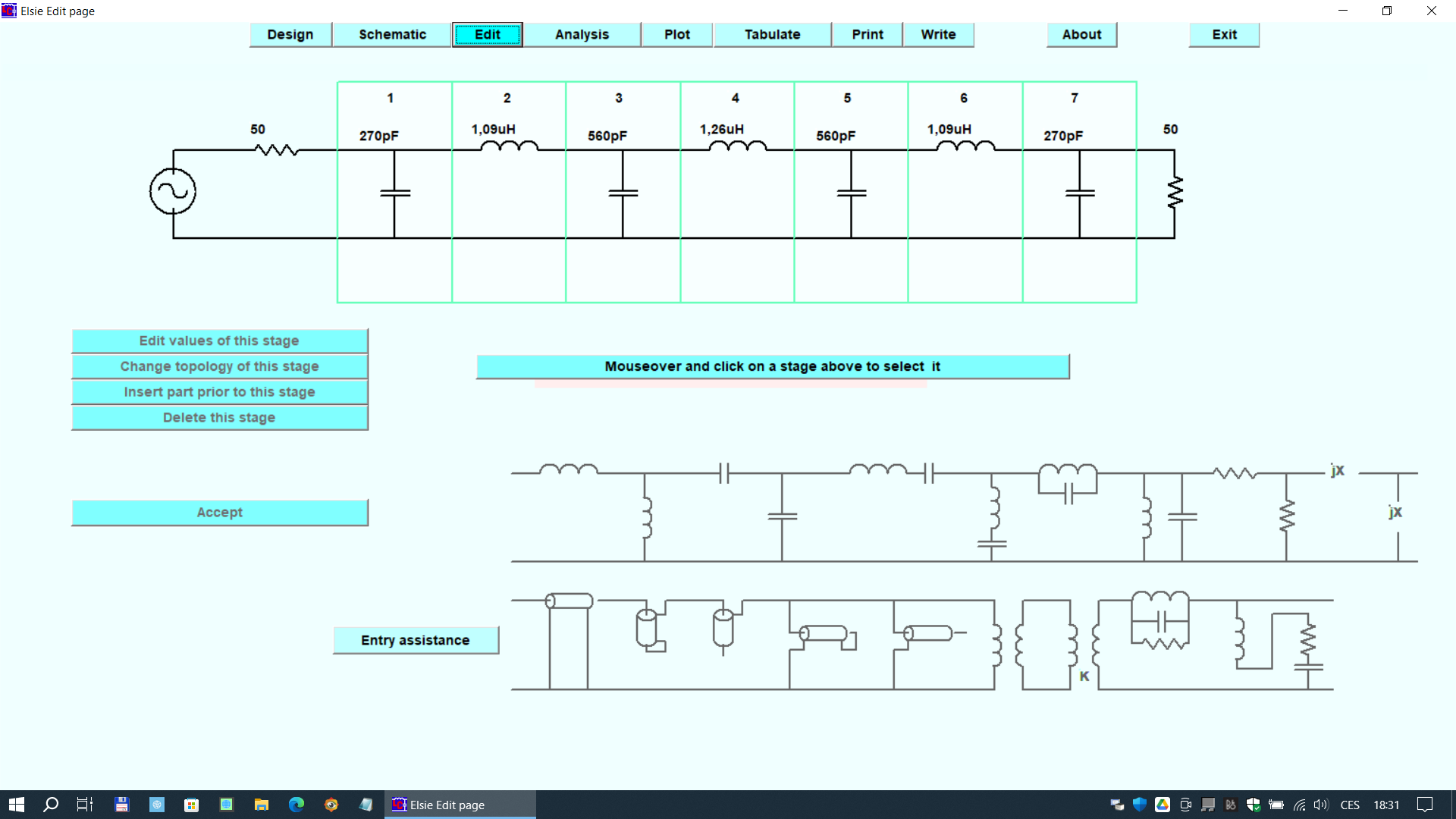 Jak jsem psal v úvodu, návrh LC filtrů nemusí být triviální, pokud nepoužijeme vhodné nástroje. Stejně, jako W3NQN rád používám SW Elsie (od Tonne Software, www.TonneSoftware.com). Licence pro studenty jsou zdarma a profesionální licence jsou dostupné za trochu peněz. Programy jsou vcelku intuitivní, na obsluhu jednoduché a mě se s nimi dobře pracuje. Proto uvedu jako pokračování našeho příkladu řešení dolní propusti pro pásmo 30m klíčové okamžiky v práci s programem Elsie: