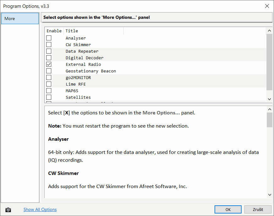 položka "External Radio" zapnutá. V takovém případě se