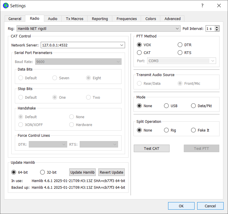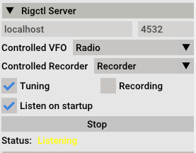 zabudován Rigctl server. Jeho nastavování najdeme ve spodní