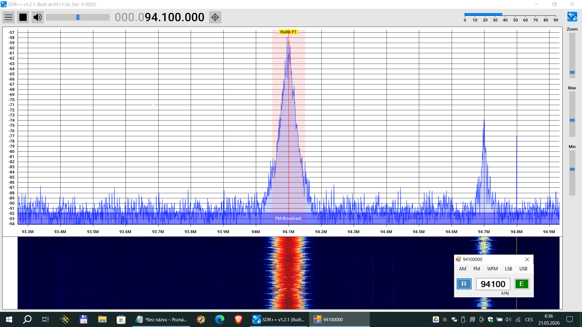 1. Program SDR++ používám proto, že zobrazuje přijímané