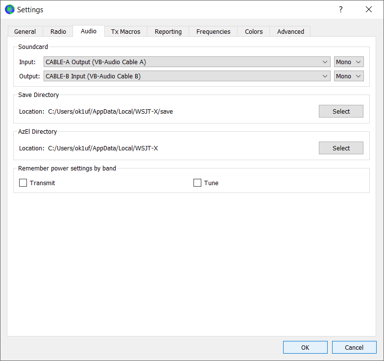 cable A a B). Současný běh WSJT-X a výše popsaného