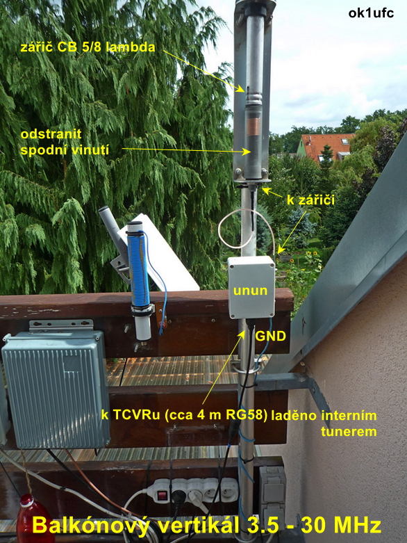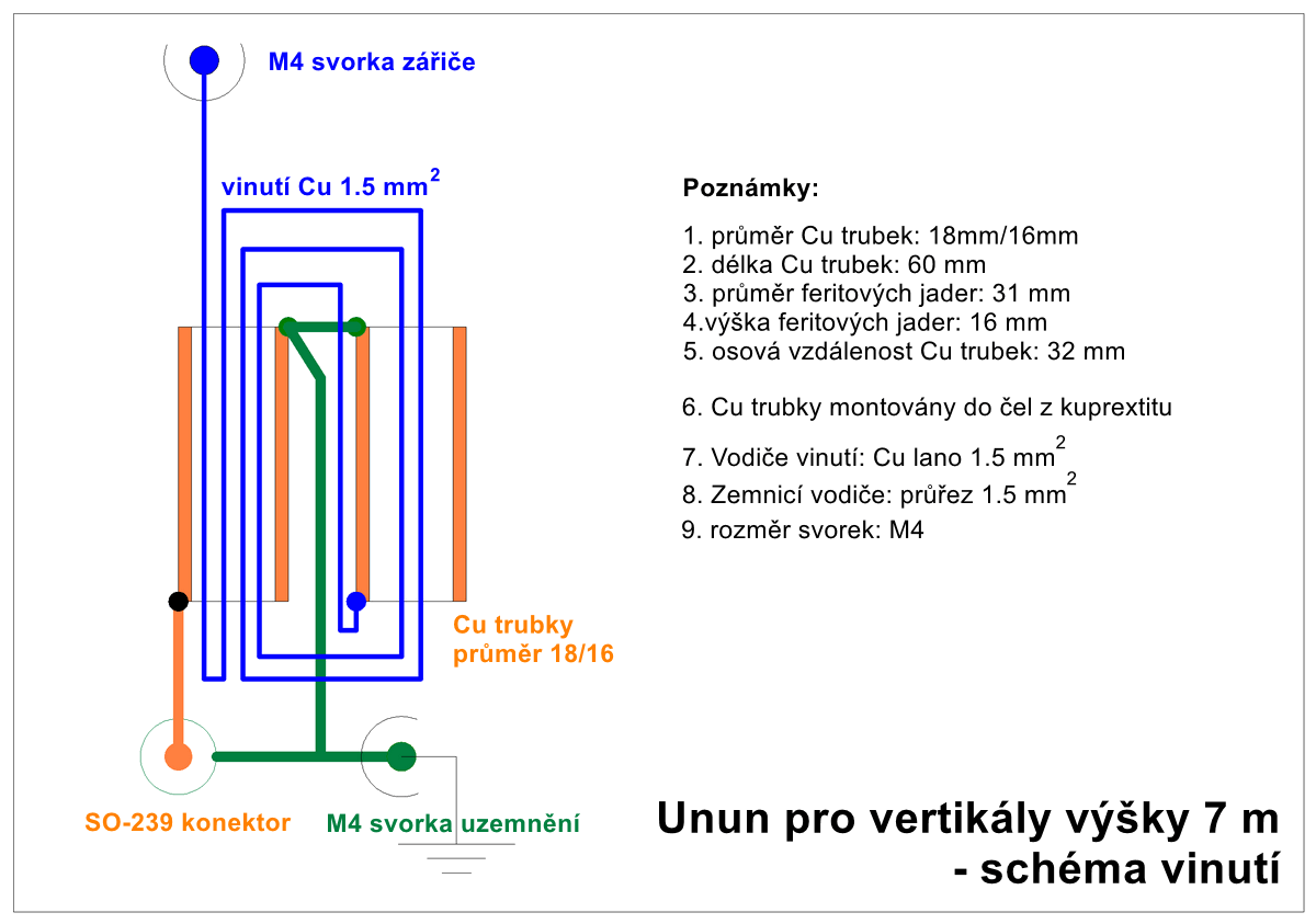 - anténa není použitelná v pásmu 160m; na tomto pásmu má unun