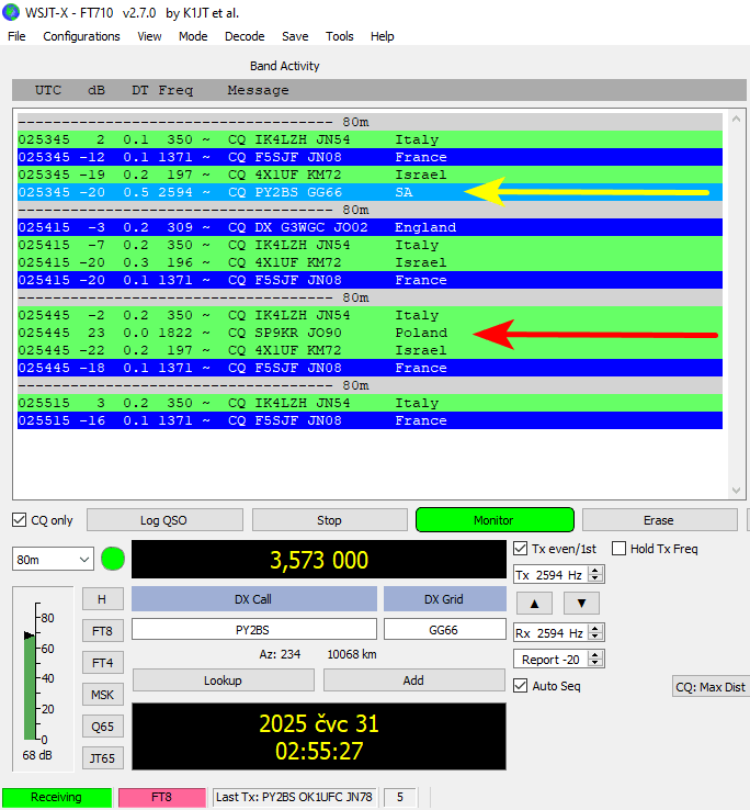 Tab. 2: 3.570 MHz, FT8, P = 80