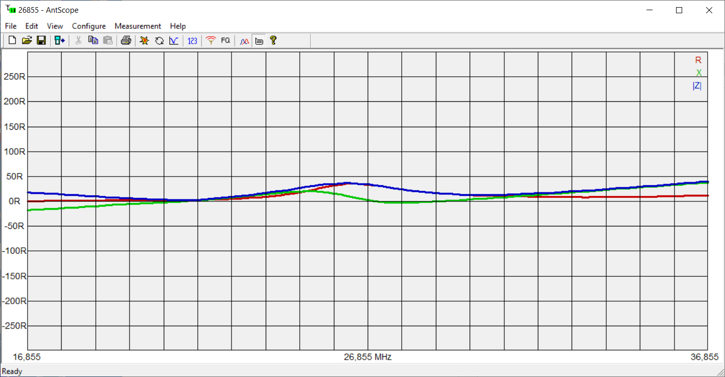 Měří se: Koeficient odrazu a průběh impedancí (R, jX, Z) po