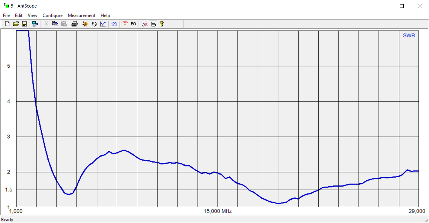 Finální měření VSWR na konektoru u TCVRu (bez tuneru)